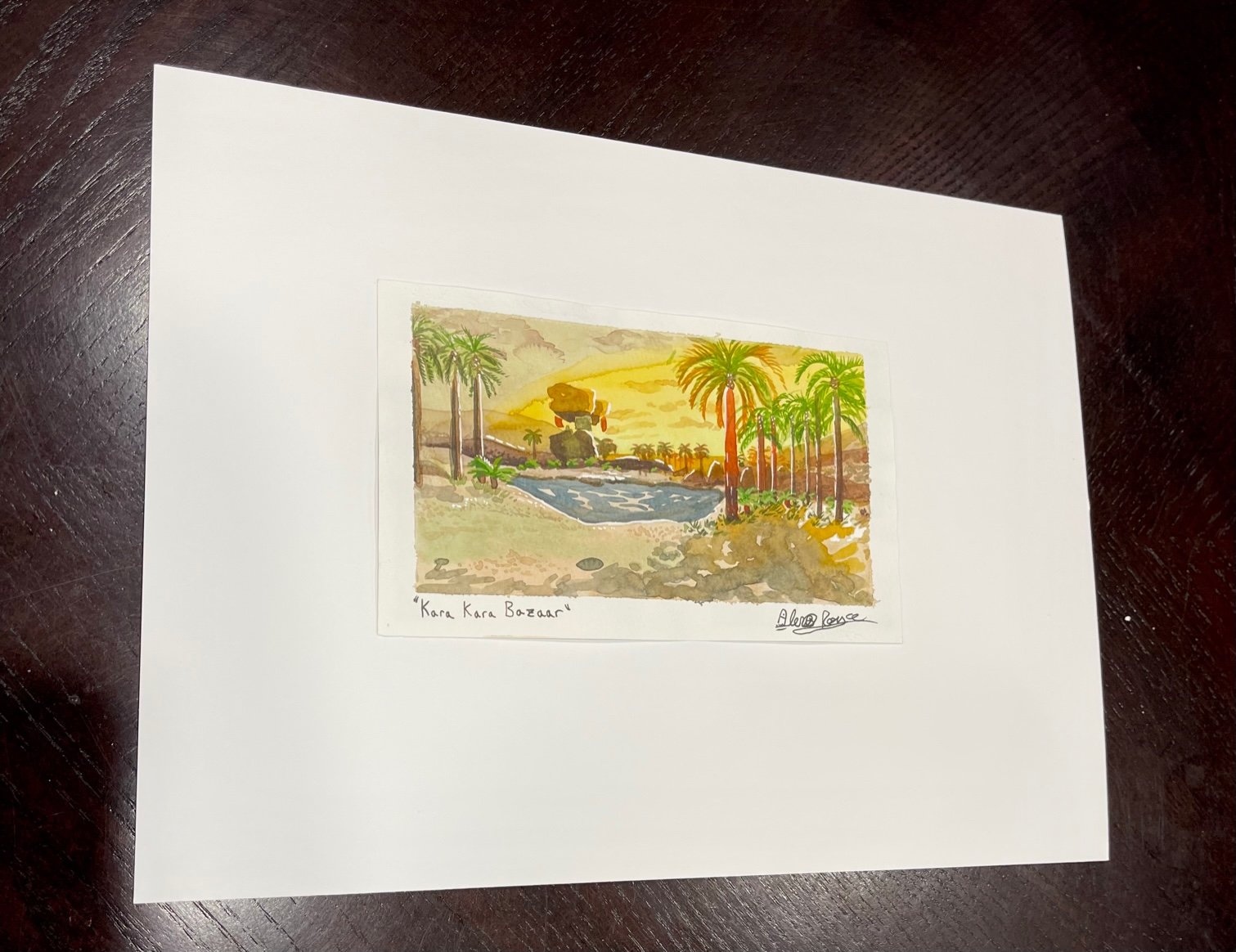 Original watercolor painting on Maruman Zuan paper, approx 17 cm x 11 cm, affixed to a 9x12" backing board.